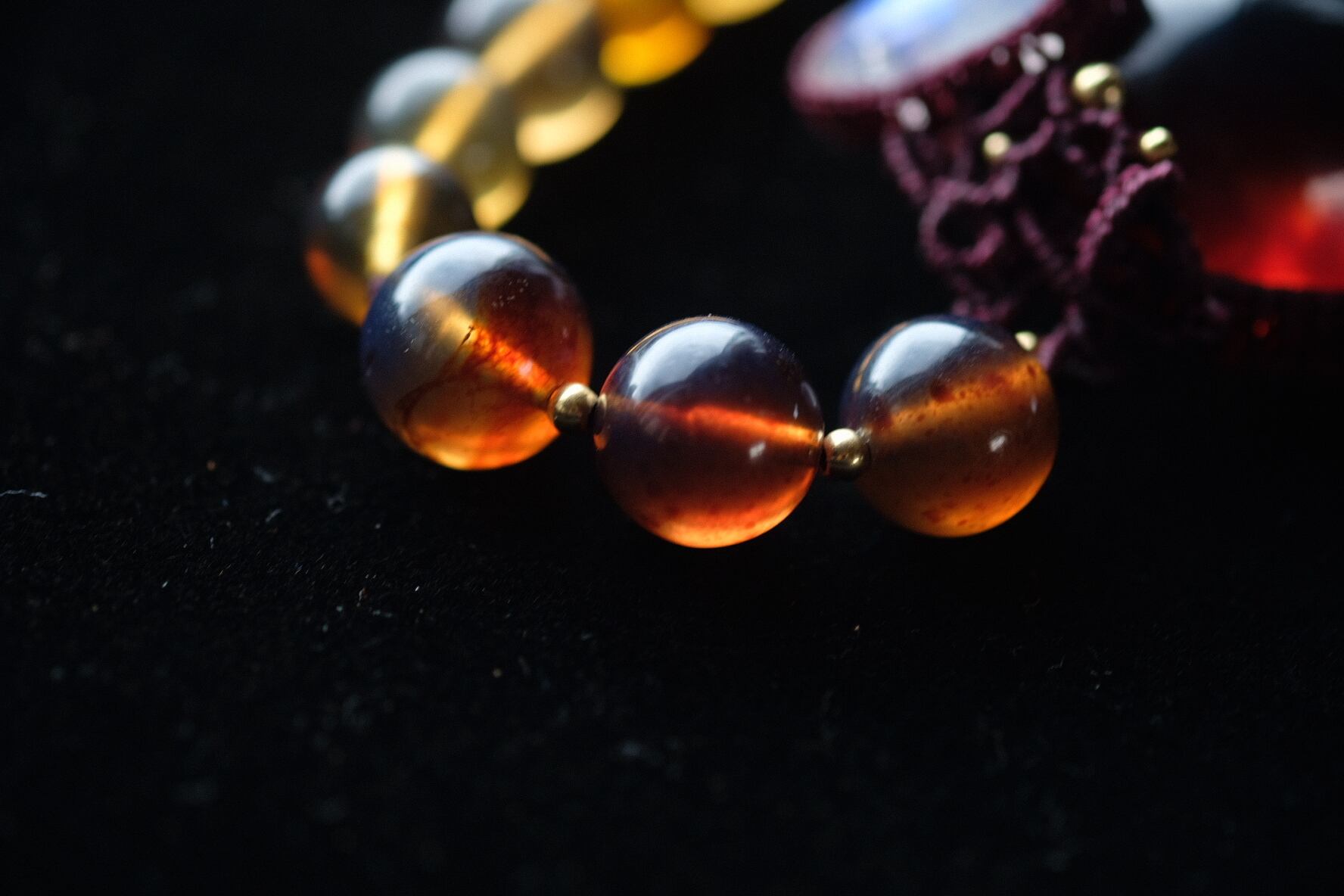 ヘソナイトガーネットのような情熱の赤をしたブルーアンバーに一目見た瞬間から心奪われてしまったのです。