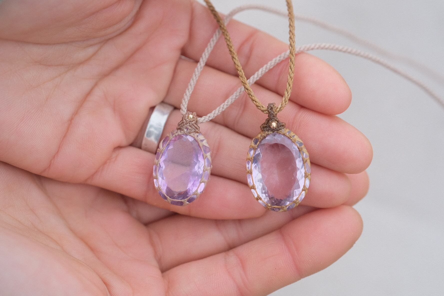 胸元にキラリと輝き、艶やかながら、優らかに包まれるような紫光を放っています。