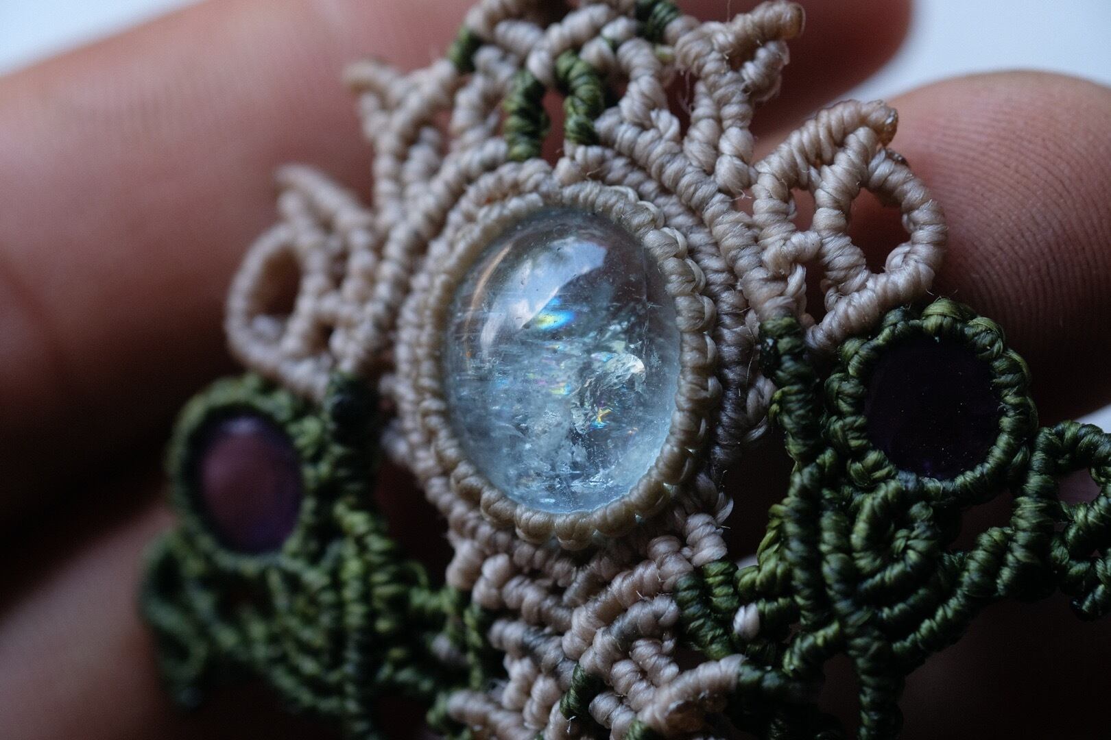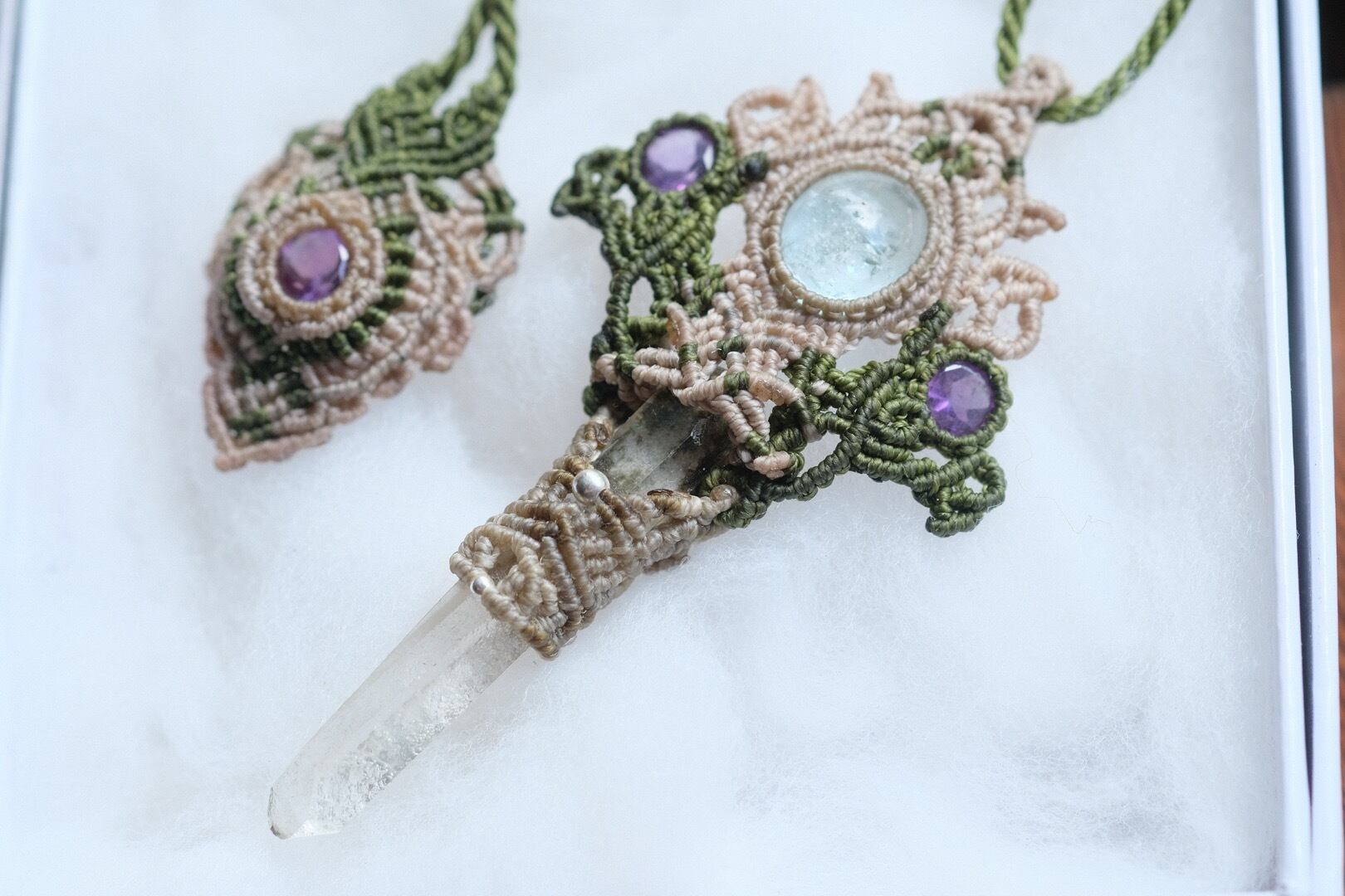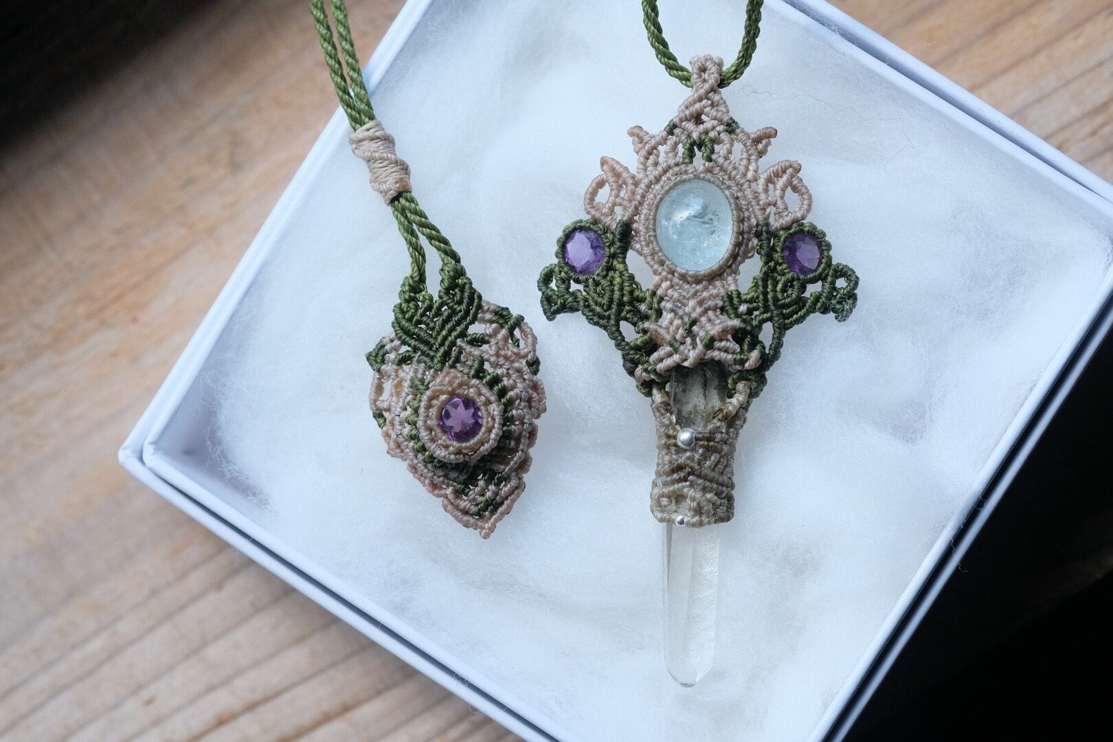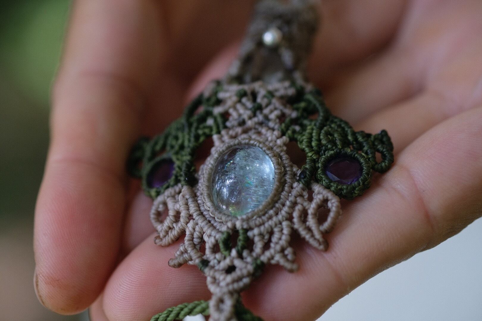 ハンドメイドのマクラメ技法で作られたアクセサリーは、一つ一つ丁寧に丹念に編まれており、唯一無二のデザインが魅力です。