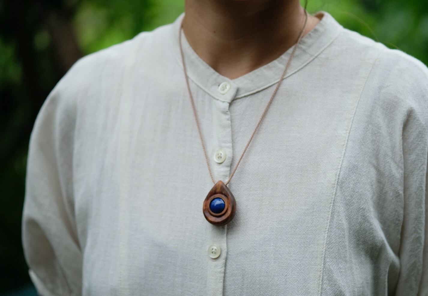 丸玉天然石と天然木を合わせたアクセサリー「∞森羅万象∞」は地球で生きとし活きる全てへの敬意を込めた『結晶』の形。